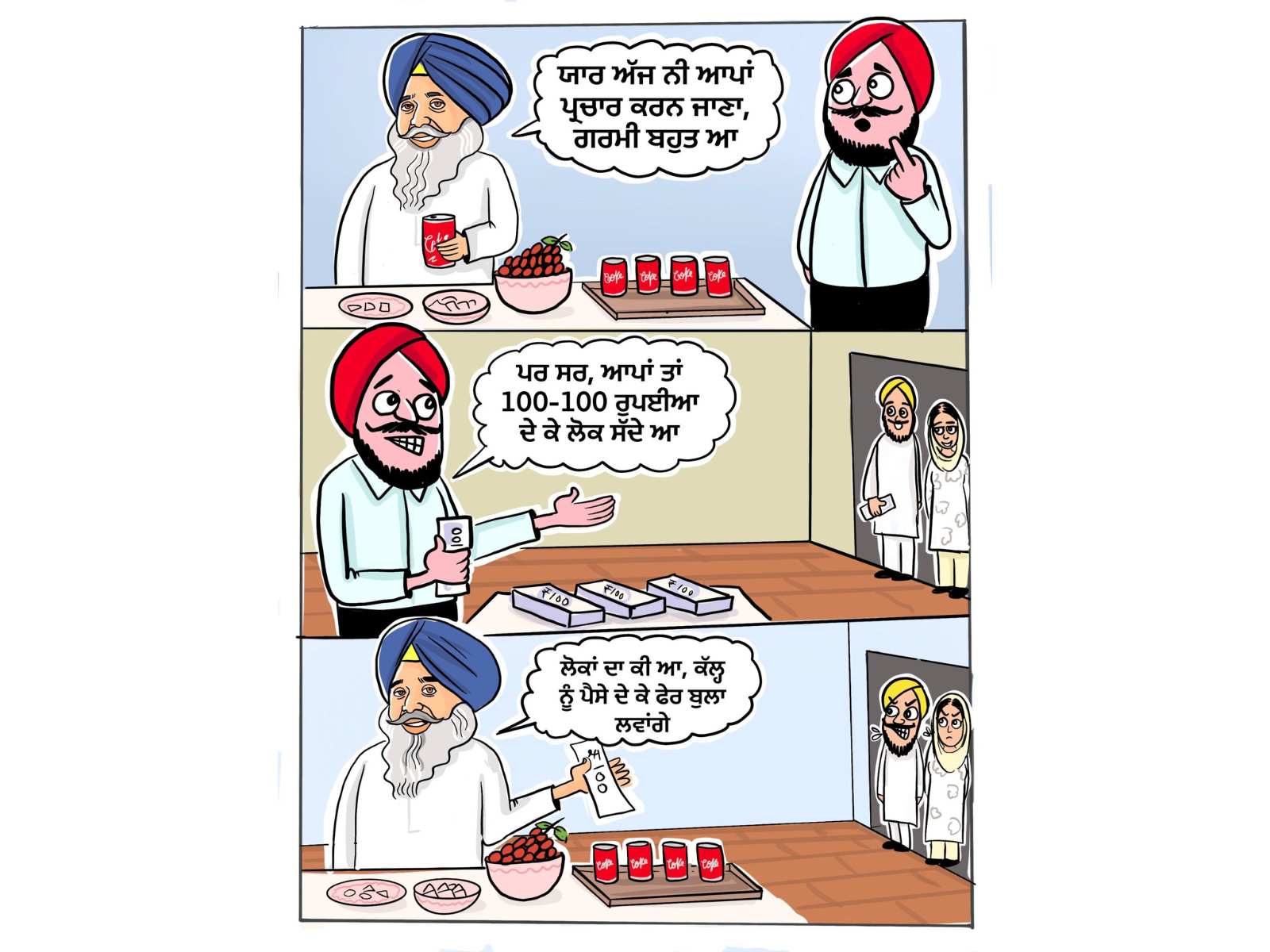 These are some of the renowned campaign series done by Kaurtoon for Captain Amarinder Singh. The series was carried out with the name ‘Sada Sanjha Naara, Captain Dubara’.